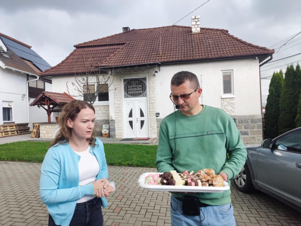 Gyergyóremetén a házi csokoládé gyár történetével ismerkedhettünk meg és kóstolón vettünk részt. A falu utolsó szövőasszonyánál Rózsika néninél szövögettek a lányok. Utolsó megállónk a vízimalom épülete és a szőnyegmisó volt. Hazafelé úton a gyergyósitrói templomban adtunk hálát.